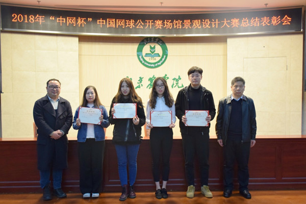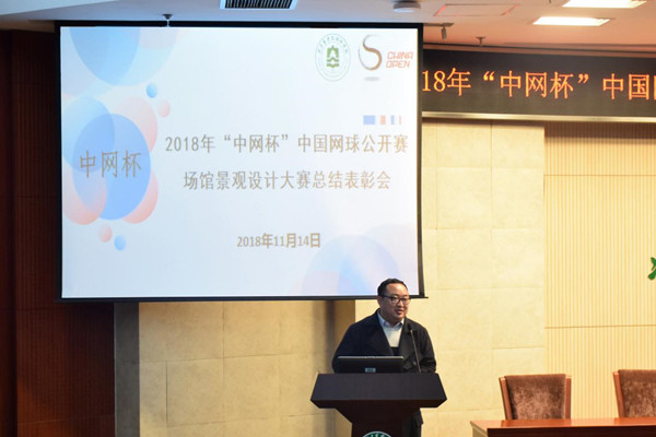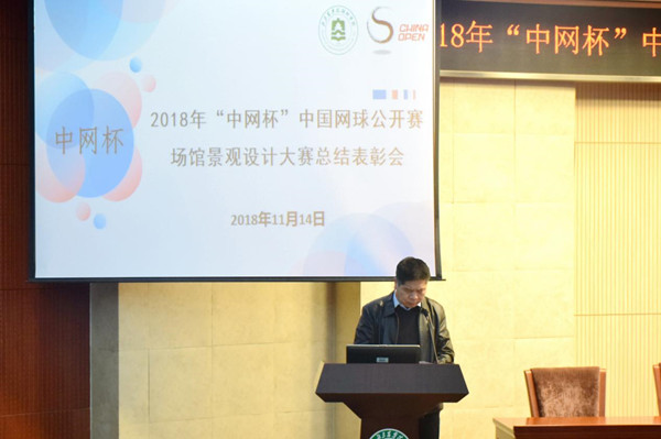 李国政副院长宣读2018年“中网杯”中国网球公开赛场馆景观设计大赛获奖名单,相关领导为获奖同学颁奖。