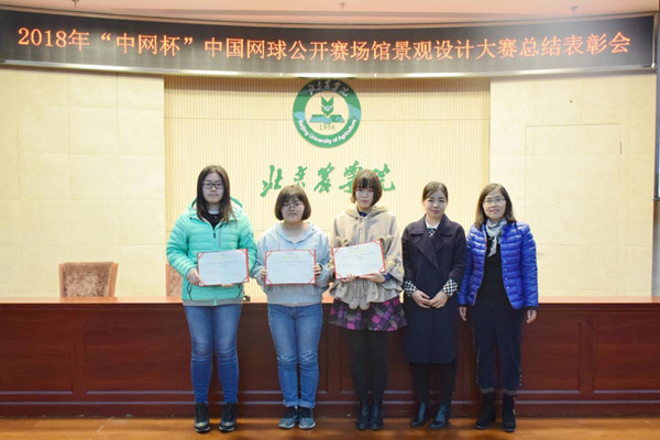 2018年11月14日12:30,2018年“中网杯”中国网球公开赛场馆景观设计大赛总结表彰会在北京农学院图书馆报告厅顺利举行。北京中国网球公开赛体育推广有限公司副总裁刘明秋,业务运行部总经理王颖彦,业务运行经理姚帆,Bet博彩