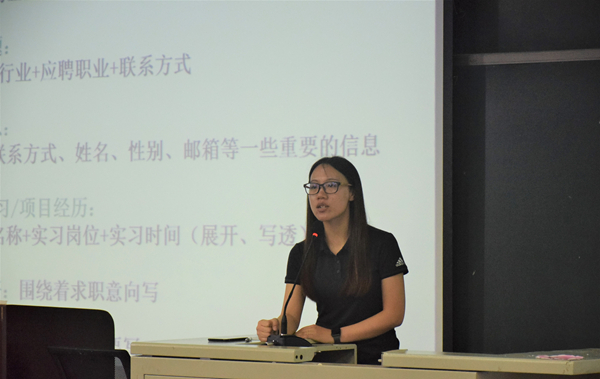 武丽老师从成绩、实习、简历以及就业四方面为同学们进行了详细的解读。首先,她向15级同学再次重申了《北京农学院学生选课细则》,提醒同学们除了关注基础课、专业课(实习)成绩外还要及时关注体育课、公共选修课、军事理论课、军训等课程的成绩,并提醒学生要重视起自己的学业问题,切莫因为学分未修够而影响毕业。接下来,武丽老师就有关即将开始的专业实习对同学提出要求:实习期间要注意安全,也要遵规守纪,展现良好园林学子风貌。将所学理论知识与实践相结合,提高自己整体素养及核心竞争力。除此之外,武丽老师还向大家现场讲授了简历的制作,强调了简历制作中的一些关键问题,使同学们受益匪浅。最后,武丽老师向大家强调了就业、考研、出国方面的问题,她劝同学们早下手、早准备、两手抓、切莫错失就业的“黄金时期”。