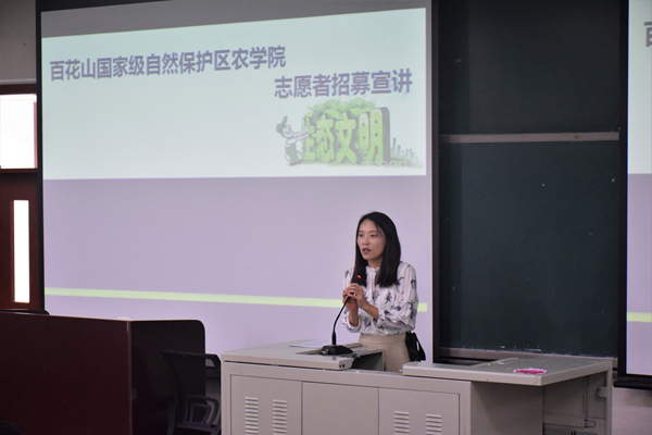 接下来,由百花山国家自然保护区科普宣教科的郑长燕进行了企业宣讲,郑科长先介绍了百花山国家自然保护区的定位以及近些年来的发展情况。紧接着,她又向我们展示了百花山的几十种植物以及一些如“生态修复”类的工程,吸引了许多同学的关注。郑科长表示,欢迎Bet博彩官网