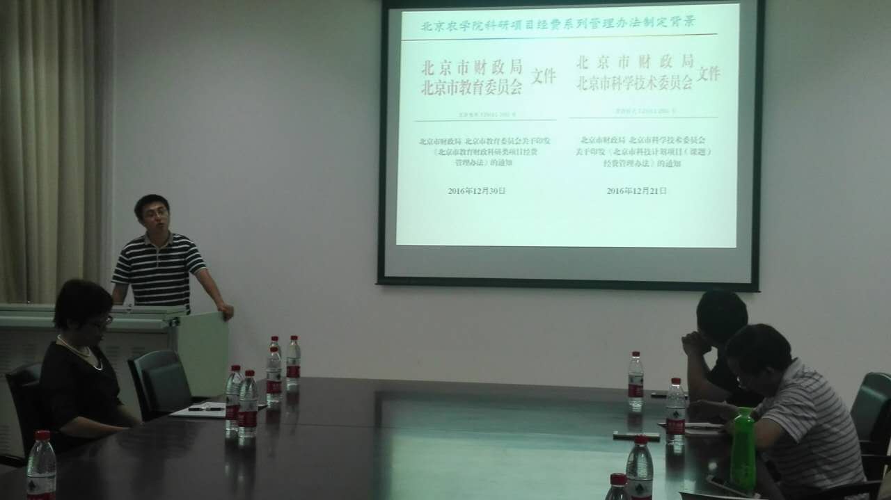 谢远宏副处长为参加会议的教师解读了学校新近颁布的《北京农学院科研项目差施费管理办法》等六个科研管理系列文件。教师们积极提问,谢处长认真解答,教师们逐渐熟悉了一系列新的科研管理办法,为规范使用科研经费提供了保障。