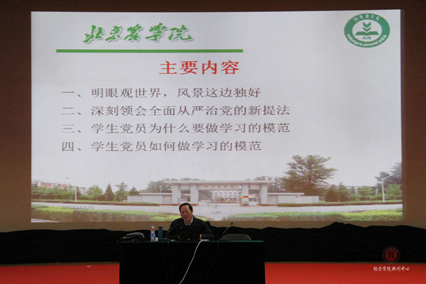 接着,沈文华老师做了“如何坚持新时期党员的先进性,争做大学生的学习模范”的报告。在讲座的过程中,沈老师还不忘拿当下的热点时事举例。他对同学们说到,当前科技发展十分迅速,我国在航空航天领域取得了重大成绩,神州11号与天宫2号的发射对接无不证明了这个事实,沈老师鼓励同学们要好好学习,将来为国家的科技发展尽自己一份绵薄之力。