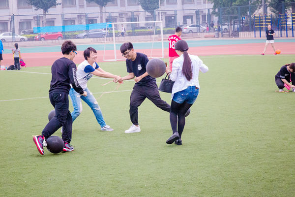 学生会素拓部全体策划并实施。充分做好筹备后,在素拓部干事的带领下进行了第一个游戏“坐地起身”,游戏规则是由四名同学背靠背坐在地上,解放双手完全靠腰部及腿部的力量背立而起,不仅体现了游戏者身体的力量,更重要的是检验了各部门干事之间的团队协作能力,同时还有小组之间的大比拼,并制定了花样百出的游戏惩罚——脸部涂鸦,为素拓活动增加了无限趣味;第二个游戏“谁是卧底”,在经历了上一回合的磨合后,同学们之间已经初步有了属于他们的默契,游刚一开始就陷入了激烈的争辩,火热的场面无形中拉近了各成员之间的距离;第三个游戏“饼干运输”,每两个部门安排新生干事们一起参与,游戏要求每人口中一根长饼干,借助饼干传递洋葱圈,经过一对对搭档之间的近距离接触后,欢声笑语不断,学生会部门之间的联系也进一步得到了加深;最后一个游戏 “踩气球”是学生会的大乱战,给了各个部门的新生干事们相互认识,相互熟悉的机会,整个游戏过程中处处可以感受到团队合作的力量。