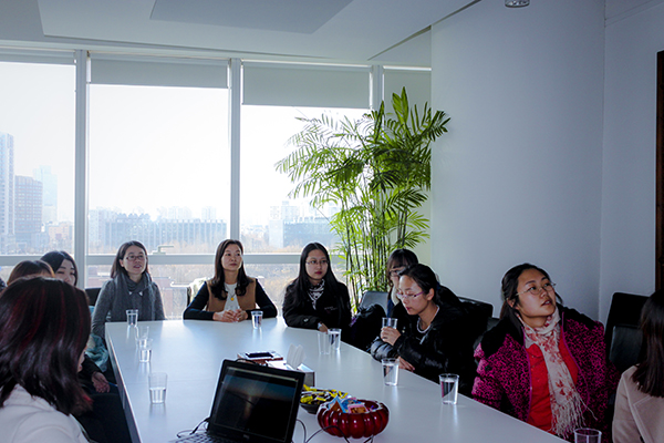 随后,风景园林的同学们与经管中心运营总监梁琼女士进行了近距离地交谈,结合本专业学习咨询有关景观设计的心得与经验,以及毕业后到公司实习的情况。同时,梁琼女士也站在步入工作多年的学长的角度,为同学们分析了学习与工作,理想与现实的差异,与大家分享了自己的工作经验,并希望同学们在校期间能够打下扎实的专业基础,为将来的工作积累知识,在步入工作后也要继续学习,努力成为一名优秀的景观设计大师。
