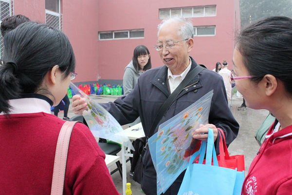 讲师,《北京野生花卉》作者,北京首家花卉诊所创始人陈之欢老师,献上了饱含心血象征团结的塑封植物标本重瓣棣棠花,根茎清晰花瓣舒展,表示了他对学校的祝愿和深深的眷恋。老师当年辛勤付出,为学生整日忙碌,如今身体健康,回来与曾经的学生相聚,这不仅是学生的荣幸,也是给学校的一份大礼。