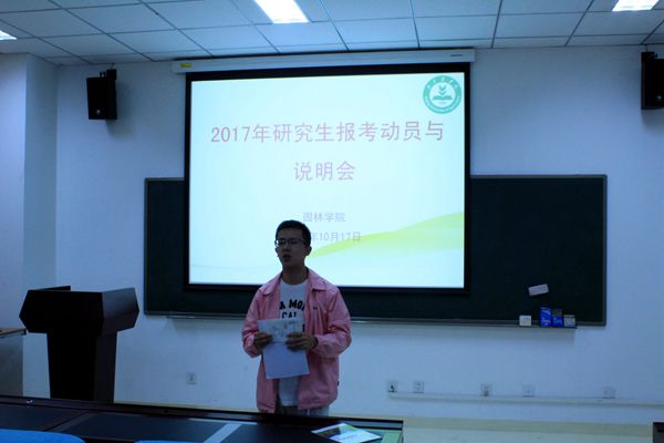 特于10月17日下午2:00,在园林楼101报告厅,召开了2017年研究生报考动员说明会。主管科研工作的副院长张克中主持会议,负责考研生工作的辅导员戴智勇、满晓晶老师进行听会辅导。