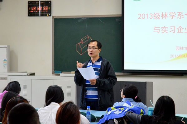 为了让同学们更好地适应即将到来的实习工作,4月20日下午一点半,林学专业实习动员与实习企业宣讲会在教学楼B205准时召开,林学系主任胡增辉老师担任会议主持,辅导员王雪老师和2013级林学专业全体的同学参加了本次宣讲会。