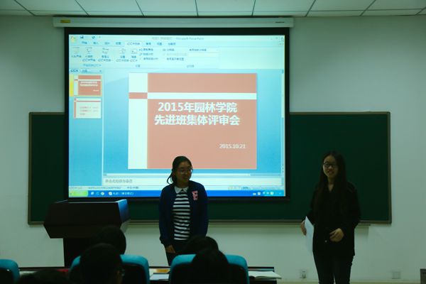2015年10月21日一年一度的先进班集体评审会在园林楼101会议室如期举行,班主任张文玲、何祥凤、赵亚洲、王润老师,辅导员满晓晶、周伟婷老师担任评委,学习部副部长梁一平同学主持。参加此次答辩的有14522、14532、14552、13522、13521、12531六个班级,各班代表精神抖擞、侃侃而谈,很好地将自己班的独特风采展示给大家。