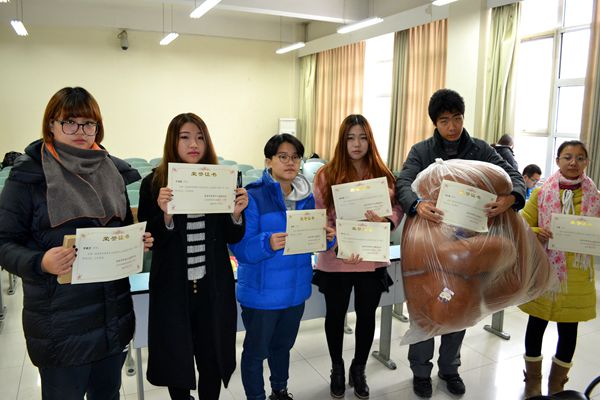 青年志愿者协会会长樊哲同学提出此次园林画展的顺利展开离不开同学们的踊跃参与,希望今后同学们能多多展示才艺。并请此次获奖的同学依次上台领奖。名单如下: