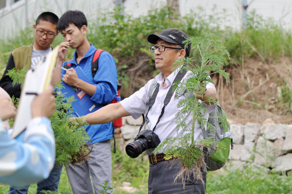 为保证教学效果,最后等待大家的是口试。同学们不仅要认识自己压制的上百种植物,还得辨别老师们新近采集回来植物的形态特征和所属科别。瞧,大家都在教室外面认真准备口试。考试中的同学你们要加油呦!