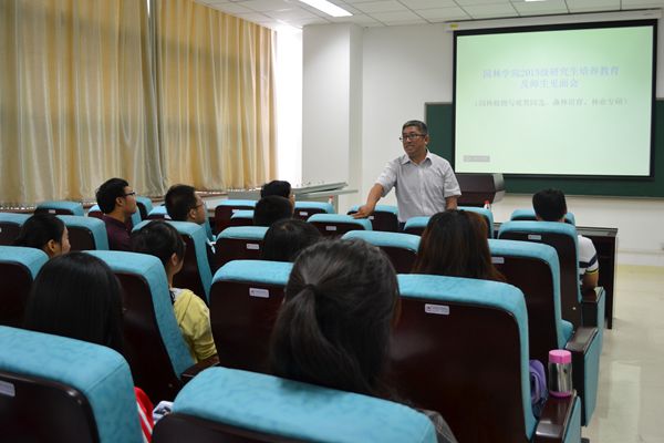 学习,介绍导师和全体研究生新生相互认识。然后,马院长介绍了学院研究生培养的硬件条件、师资力量、科研项目等情况。最后,马院长重点向新生阐释了风景园林学科学术型研究生和专业学位研究生的培养方案,使研究生新生对课程学习、实践教学、论文工作等培养环节有了清晰概念,为今后的培养工作指明了方向。