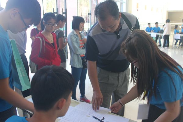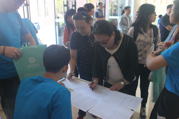 8点不到志愿者们就纷纷到场忙碌起来,有的布置会场,有的摆放水果。9时整,8551班校友们陆陆续续地来到园林楼大厅签到。当看到阔别已久的同班同学,他们互相拥抱,彼此之间没有太多的生疏,有的只是再度重逢的喜悦。