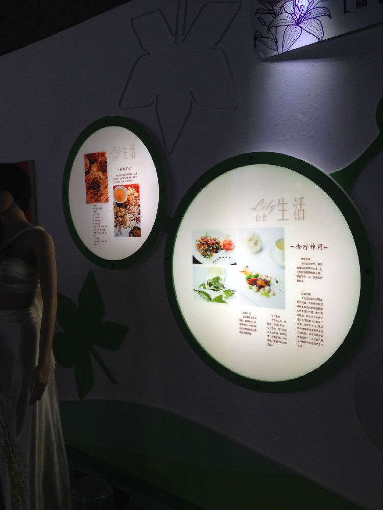 王树栋教授的百合育种团队承担了百合室内所有文字和橱窗的展示,系统而通俗地介绍了百合的起源、分布、我国百合植物资源、百合栽培、育种、装饰及园林应用、食用药、百合花语等,对广大观众进行了科普宣传和教育,取得良好的效果。侯芳梅副教授在百合文化节开幕的前两天以百合为主花材进行了人体装饰模特走秀和中国传统插花表演,也赢得了主办方和广大游客的高度评价。