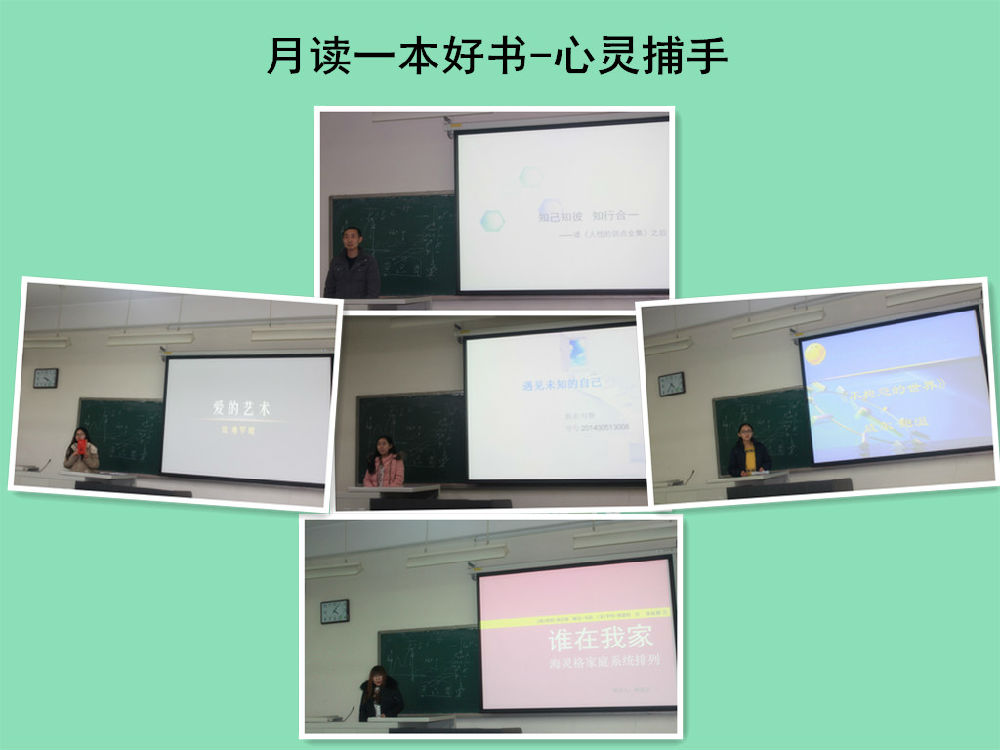 本次交流会以“心灵捕手”为主题,分别由2014级风景园林专业王希昌、付静、鲍俊辰、马欢、李菲菲五位同学结合自己所读书籍与大家分享心得体会。