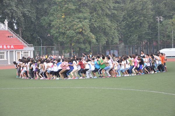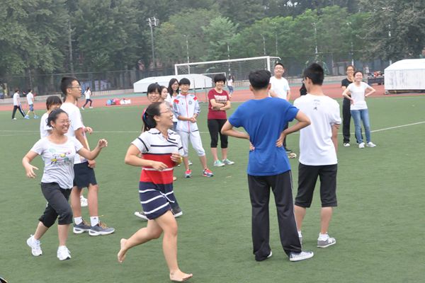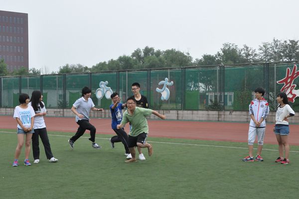 操场上,14541班同学们围圈环绕,以地为席,促膝而坐;“做个鬼脸拍照留念”、“现场扮演一个中毒身亡的人”——真心话大冒险惊险刺激。14532班同学们分列两排,对战拉锯;中间放置一个瓶子,报数定人,先跑上前拿到瓶子者为赢家,在班主任赵亚洲裁决下,不论男女,大家都拼力一博。14552班同学们五毛一块,随意搭配,班助毛轩硕大喊:“三块五!”同学们奔走组合,更显智慧。