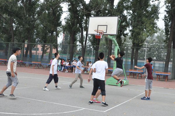篮球场上,14531班同学们飒爽英姿,运球投篮。男生们先是以球赛开场,活力四射,然后男女比赛投篮,巾帼不让须眉,博得大家阵阵欢呼。
