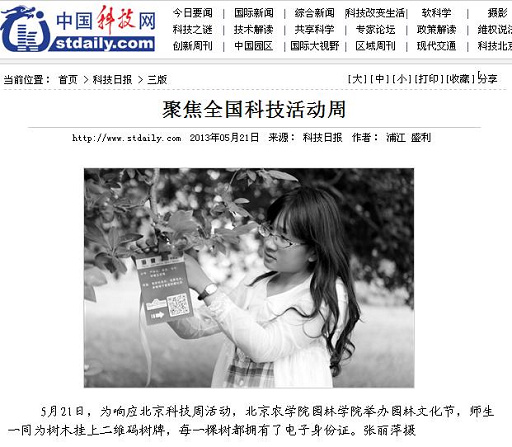 【科技日报】聚焦全国科技活动周 校园树木挂上二维码“身份证”
