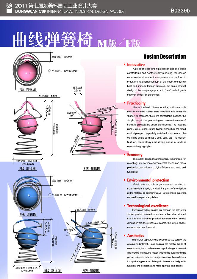 5线弹簧椅参加BILL WANG 全国高等院校工业设计大赛