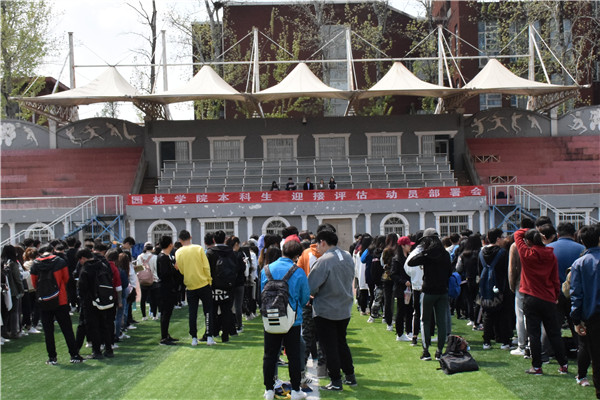 在操场召开本科生“迎接评估”动员部署会,学院党总支副书记、副院长李国政,辅导员史雅然,兼职辅导员贾思纯、张思佳、张闻笛,2016级、2017级和2018级800余名学生参加,会议由学院团委书记杨刚主持。
