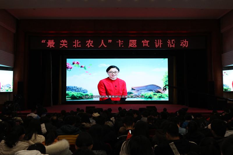 赵祥云教授,侯芳梅副教授,杨刚老师和白云海同学四人入选“2019最美北农人”并向全校进行主题宣讲。