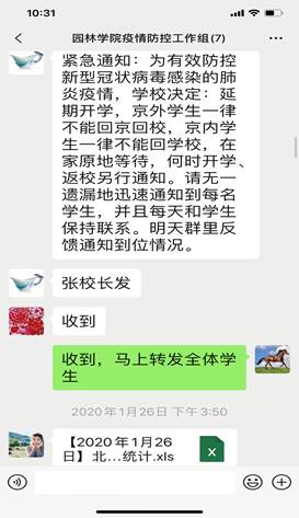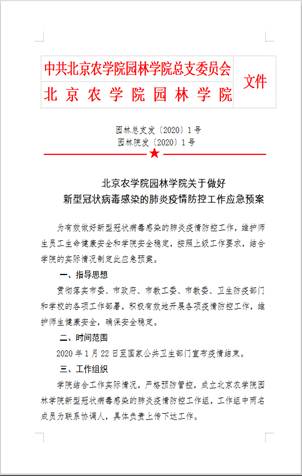 关于做好新型冠状病毒感染的肺炎疫情防控工作应急预案》(园林总支发〔2020〕1号,园林院发〔2020〕1号),成立了疫情防控工作组,指定办公室主任和团委书记为联系协调人具体上传下达,进一步明确工作职责,建立工作机制,认真落实上级安排部署,保证师生动态及时掌控上报。