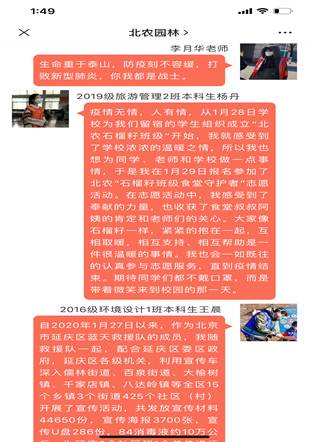 师生积极响应号召,踊跃报名参与到当地战“疫”行动中,积极参加疫情防控志愿服务,在全国不同地区的各个社区为遏制疫情扩散、夺取防控胜利贡献着自己的力量,彰显出了园林师生勇于担当、甘于奉献的崇高精神。