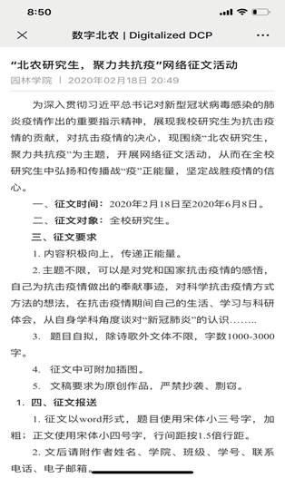 学院在学生中举办了征文、艺术作品等形式的征集评比活动。尽管是在寒假期间,学生们也积极用海报、文章、抖音视频等不同方式赞美讴歌战“疫”英雄、表达祝福,传播抗击疫情正能量,坚定战胜疫情的信心和决心。