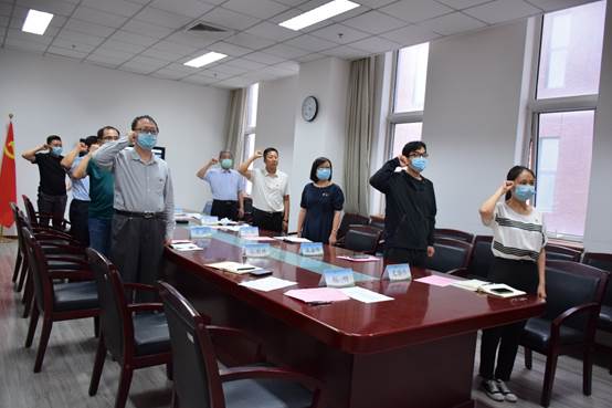 全体与会党员还面朝党旗庄重宣誓,重温了入党誓词!