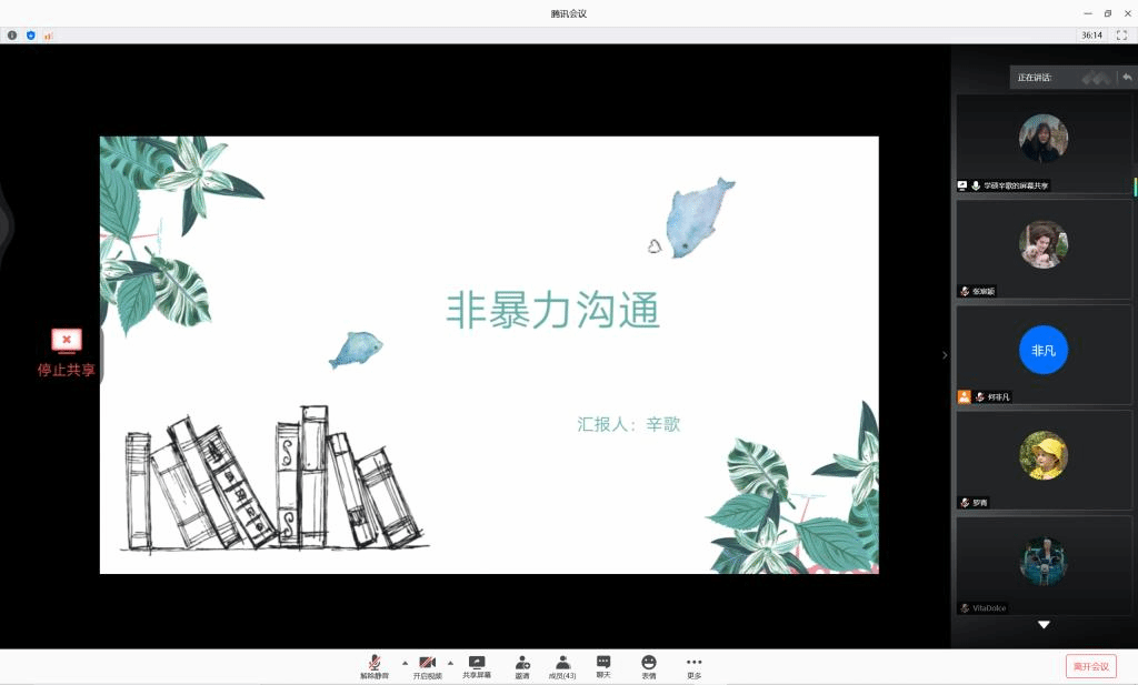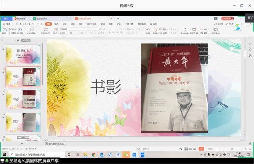 园林研究生学生会成员 刘英伟 主持了本次云端读书汇报会。“智者乐山山如画,仁者乐水水无涯,从从容容换杯盏,平平淡淡品书华。” 书中总是能给我们智慧和启迪,每一次翻开书本都让我们置身于知识的海洋。