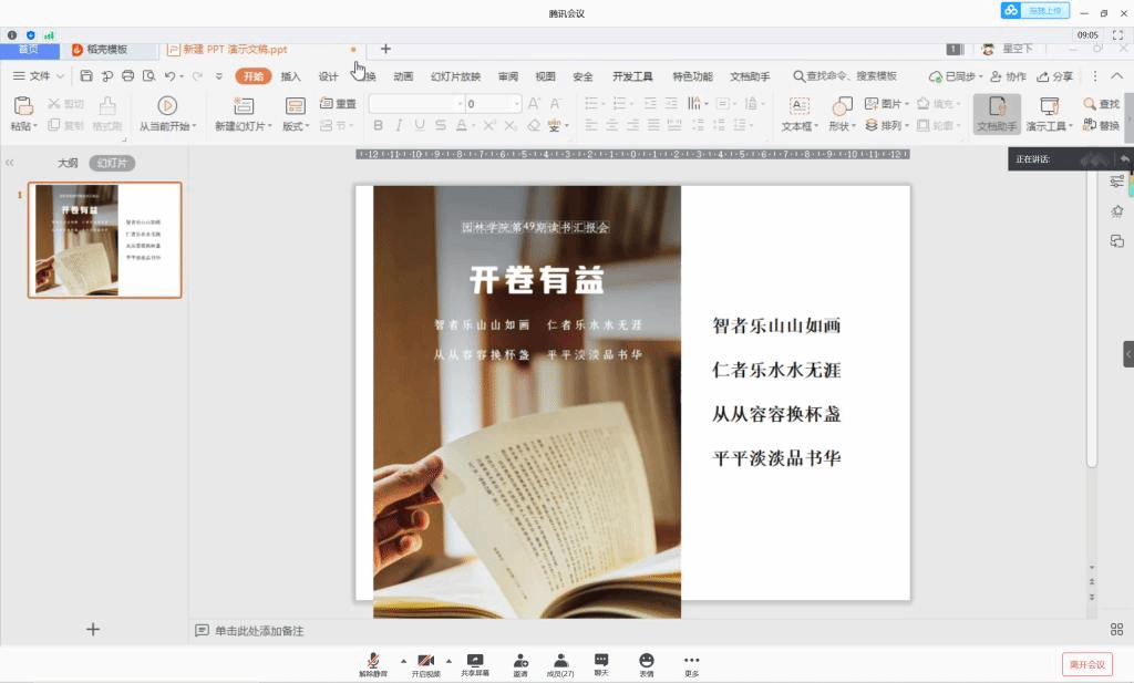 第四次云端读书汇报会,也是本学期最后一次读书汇报会。在人生的旅途中,书引领着人们走出误区,走入辉煌。