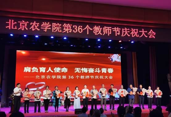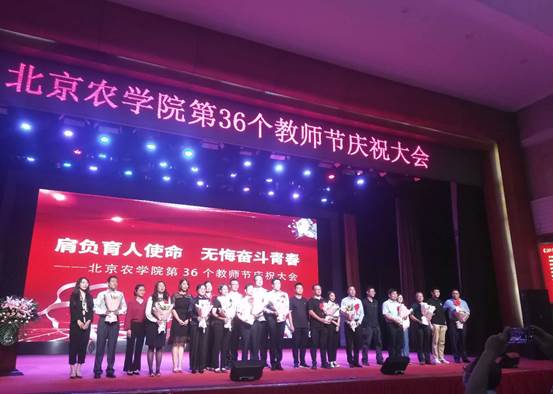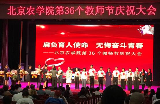 部分教师集体和个人受到表彰。会上,满30年教龄教师王万山和黄凯、荣休教师巢时平、北京市“三八红旗集体”获得者林学系、北京市高等学校教学名师获得者王文和以及北京市委组织部青年骨干个人项目获得者葛伟上台领奖。新入职教师张炎、王聪、史雅然分别为其“成长导师”张克中、王文和、李国政献花。