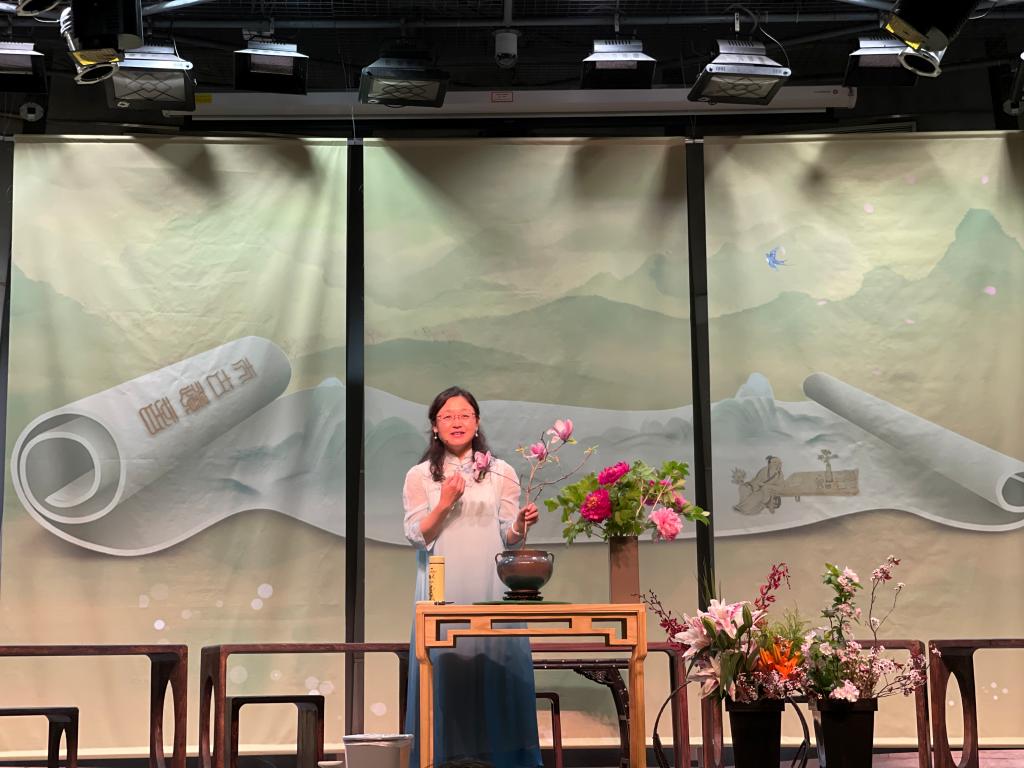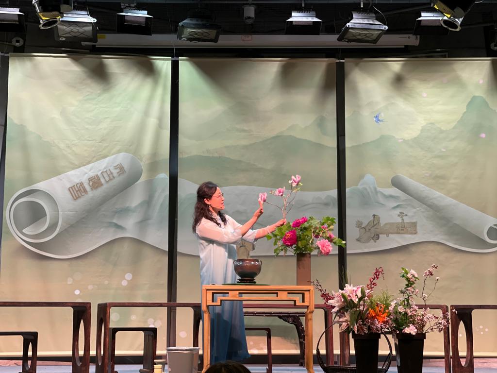 的侯芳梅副教授,为观众们带来了一场精彩的中国传统插花艺术讲座。