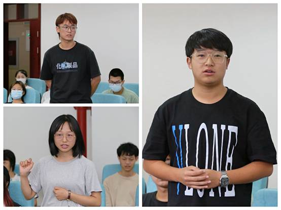 新生代表李爽、吴晓丹、刘沛杉三位同学在会上谈了入学后的感受。他们分享了自己拿到录取通知书时兴奋和忐忑的心情,对学院老师无微不至的关怀表示了感谢,也对能够加入Bet博彩