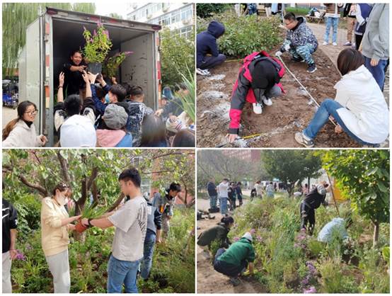 本次课程实习将研究生公寓绿地作为实施地块,学生分为6组,每组约15平方米。选用宿根的乡土花卉,采用自然主义花境种植设计的方法完成花境的设计与施工。实习过程中,学生掌握了植物材料的基本特征,巩固花境设计与营建的基本方法,培养学生全面系统的设计实践能力。