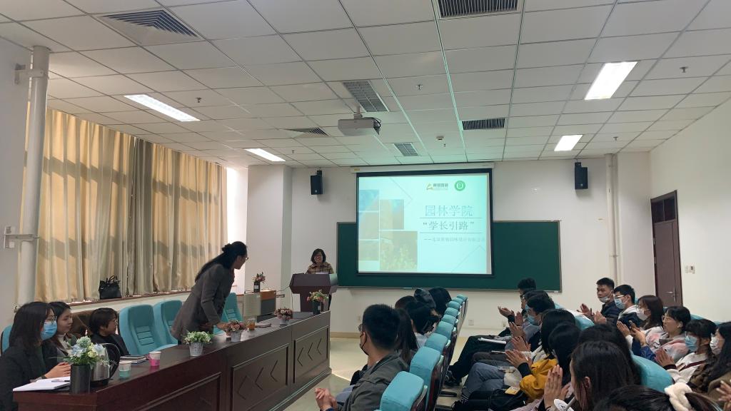 首先,李燕彬副总经理以“与时代共前行——做一名优秀的风景园林人”为题,与同学们展开交流。为同学们系统地梳理了园林行业近30年的发展;从人居环境维度、空间尺度、存在问题三个角度向同学们展示了未来园林的发展趋势,即跨界、融合、创新、发展。为同学们提供了基于新时代人民美好生活需求的风景园林转型实现路径。