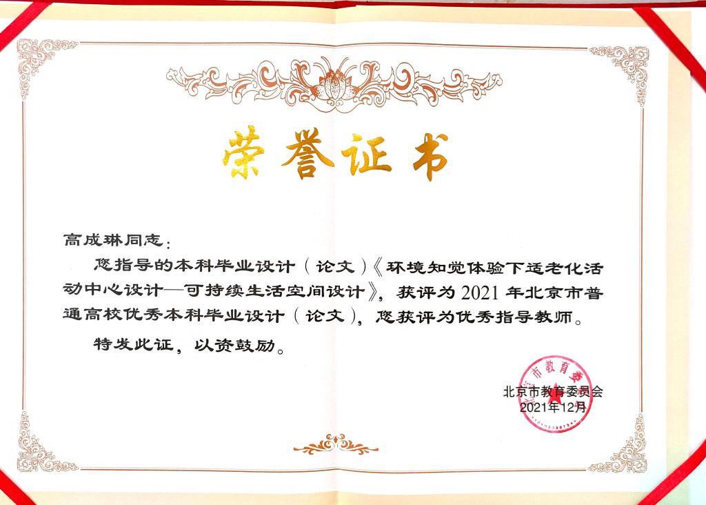 祝贺张维妮、高成琳、张炎三位老师获评2021年北京市普通高校优秀本科毕业设计(论文)优秀指导教师!