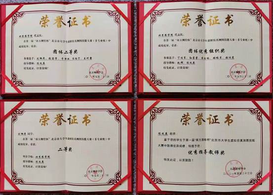 师生获得多项荣誉,其中个人二等奖1项,团体二等奖1项,团体优秀组织奖1项,优秀指导教师1人。