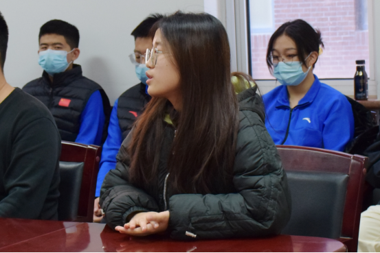 志愿者学习伙伴代表、2018级本科生王文霄同学发言,表达自己会全力支持志愿者们的工作,并充分做好对接伙伴的学习任务协助。
