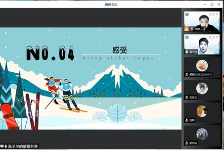 按照学院制定的冬奥会志愿者走进班级分享冬奥事迹的工作安排,学院的闭环内志愿者、闭环外志愿者和城市志愿者分别在线上用PPT的形式向与会同学汇报了他们在参与冬奥志愿服务、上好“冬奥大思政课”的收获和感受。让更多的在校大学生了解了志愿者们参与服务过程中许多不为人知的精彩故事和感人事迹,被他们的奉献精神所感染。