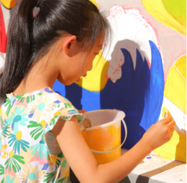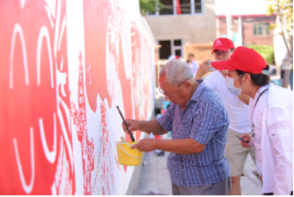 活动以乡村墙绘为载体,四家庄村为墙绘绘制场地,由创作作品学生亲自实地绘画。墙绘内容将“乡村振兴”与“党史党建”两部分紧密联系本地现实情况,成为中国共产党领导人民走向幸福繁荣的真实写照。两大主题紧扣乡村振兴政策,宣传指引前进方向,结合本土乡村历史文化,深入建设本地精神文明。不浮夸、接地气的墙绘活动激发起当地村民的参与热情,成为了地校间文化互动交流的载体和生动的党建宣传形式。一些村民运用其所擅长的书法和绘画为墙绘添砖加瓦,一些村民前来为墙绘扶梯搭架、送餐送水,当地小朋友也兴致勃勃地参与到墙绘制作中,村民们以各自擅长的方式与学生共同助力完成了墙绘绘制。墙绘中的“四家庄村乡村振兴印记榜"则为这些活动的参与者们留下了美好珍贵的真实印记。