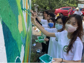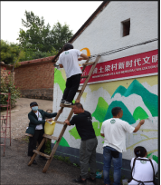 艺术设计专业的特色和实力。活动以乡村墙绘为载体,黄土梁村委会墙为绘制场地,师生共作一幅画,将艺术作品立体运用乡村公共空间,弘扬社会主义核心价值观和新时代乡风民风建设,以自然美丽、文化鲜明的艺术形式提升了黄土梁村的精神风貌。