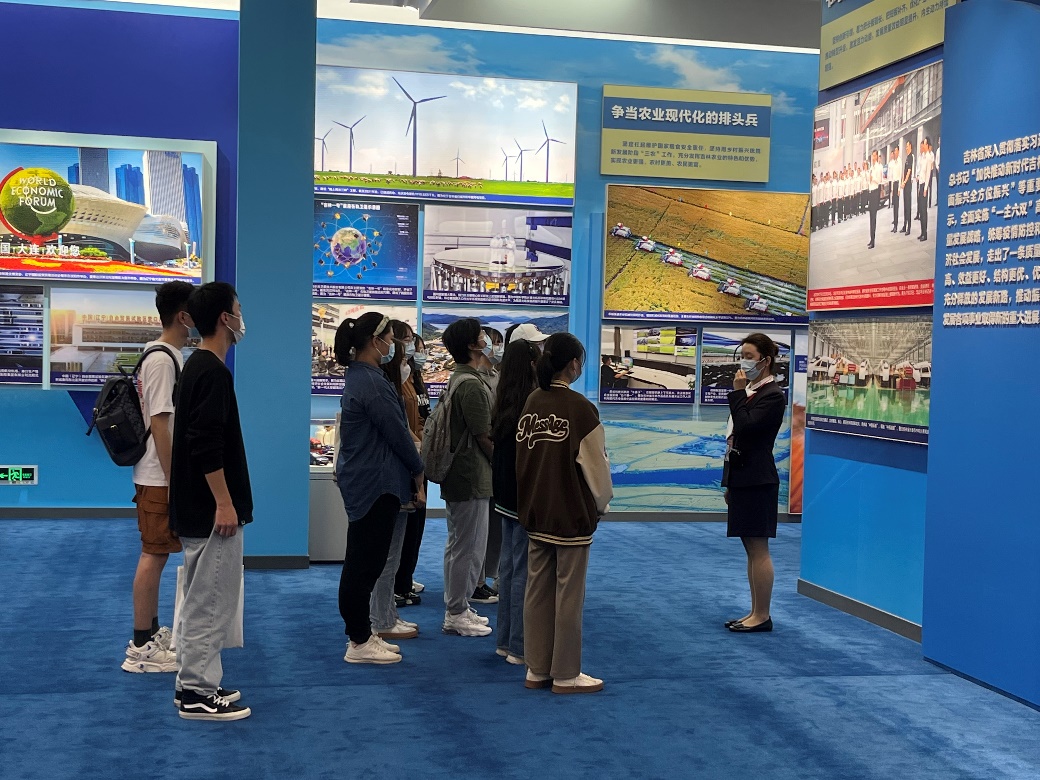 组织近百名新生集体乘车前往北京展览馆参观“奋进新时代”主题成就展。展览中一件件实物模型、一段段生动视频、一幅幅图片图表,浓缩着新时代十年来神州大地上日新月异的变化和举世瞩目的成就。