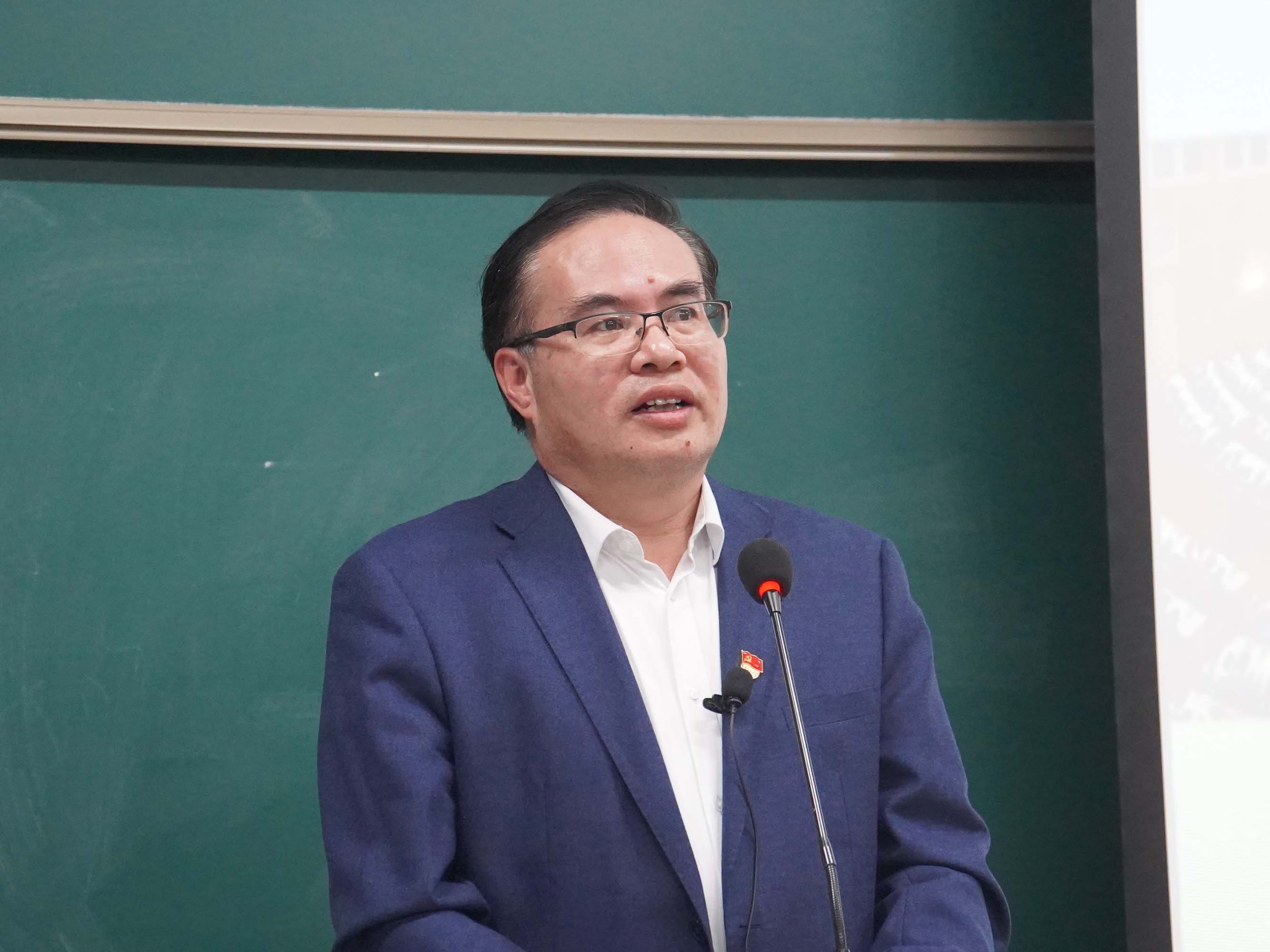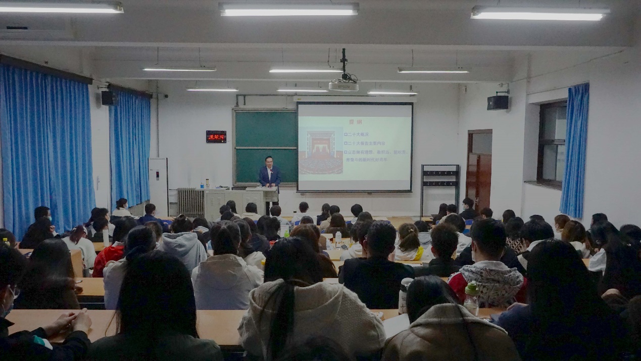 邀请马克思主义学院院长华玉武以“广大青年要坚定不移听党话、跟党走”为题在教学楼A座102教室为学院学生党员、入党积极分子宣讲党的二十大精神。