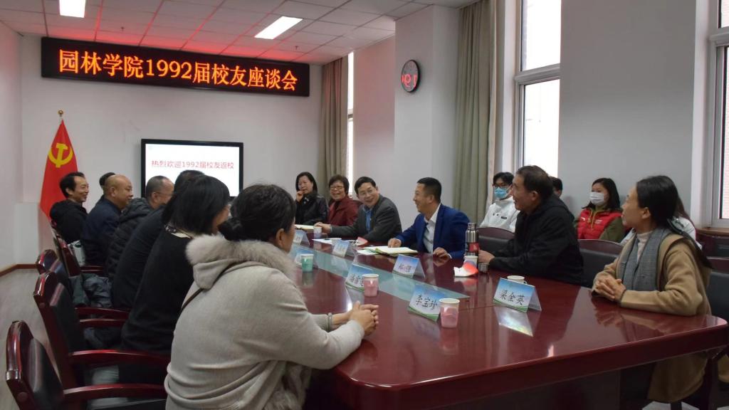 1992届校友重返母校参加毕业30周年纪念活动。上午11时,校友座谈会在园林楼611会议室举行。北京农学院副院长兼Bet博彩