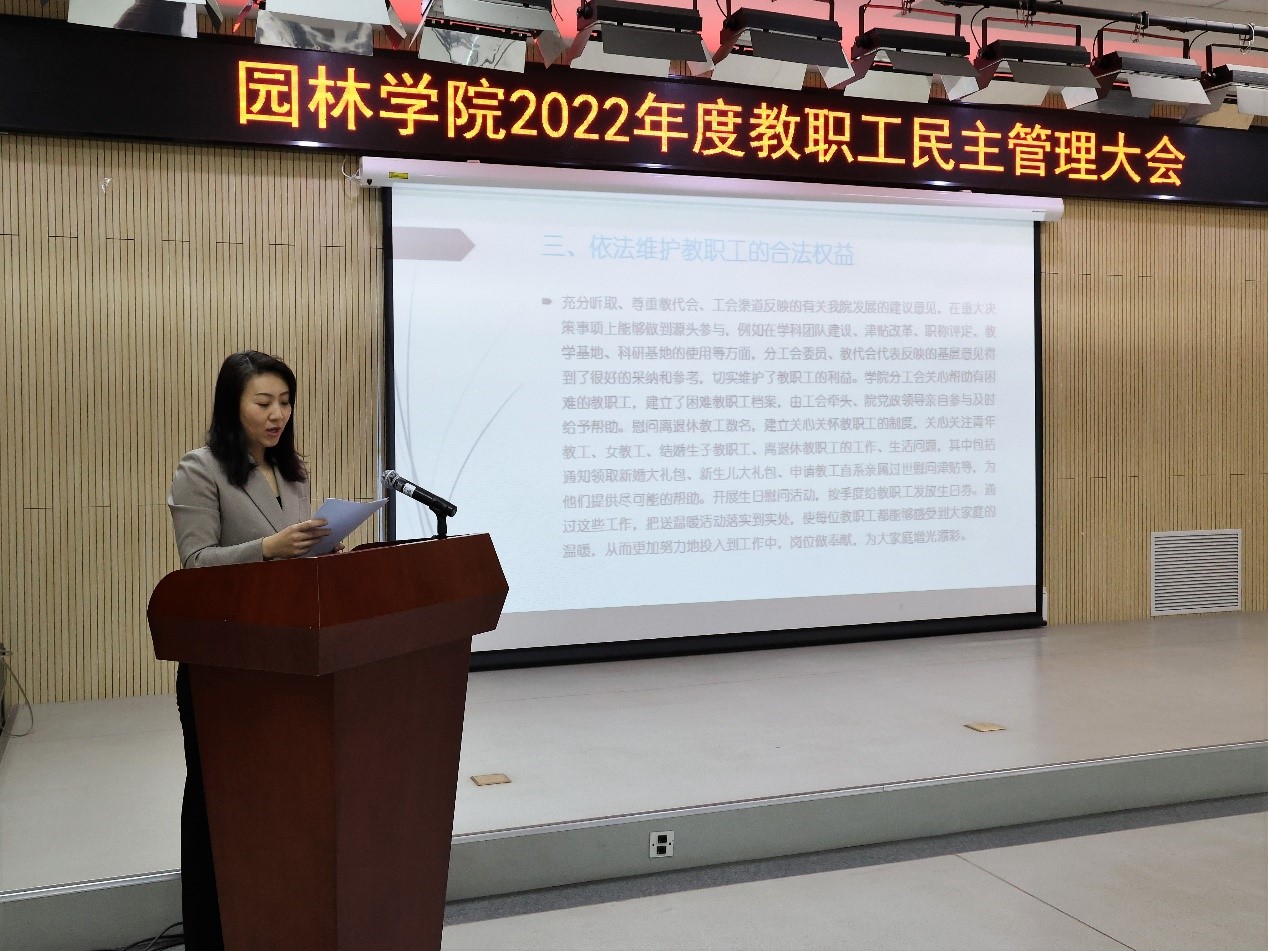 在工会活动中心104召开了2022年度教职工民主管理大会,全体教职工参加了会议。会议由分工会主席孙薇薇主持。