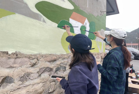 党总支组织学生党员和入党积极分子来到平谷区金海湖镇东马庄村和小东沟村,发挥专业特长,为村中老旧墙体进行墙绘美化。