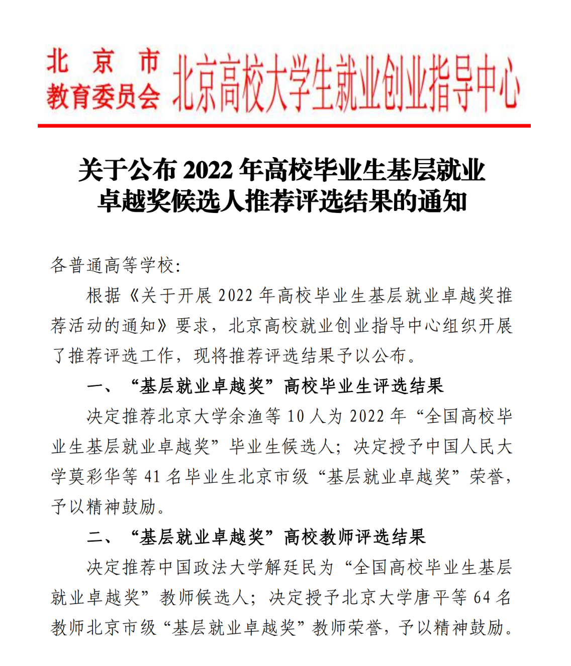 近日,北京市教委北京高校就业创业指导中心公布2022年高校毕业生基层就业卓越奖候选人推荐评选结果。经高校推荐、专家评审,Bet博彩