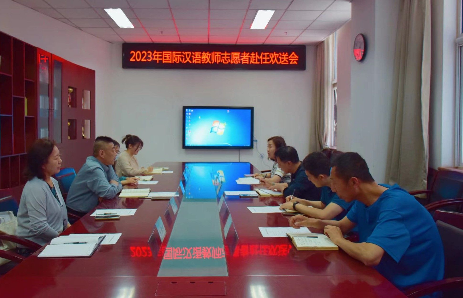 会议祝贺程睿翾同学通过层层选拔赢得此次志愿服务机会;希望程睿翾同学紧密依靠我驻外机构、尊重当地习俗、遵守出国人员纪律要求;认真践行志愿者精神、积极传播中华传统文化、讲好当代中国故事,为学校国际合作交流多做贡献。
