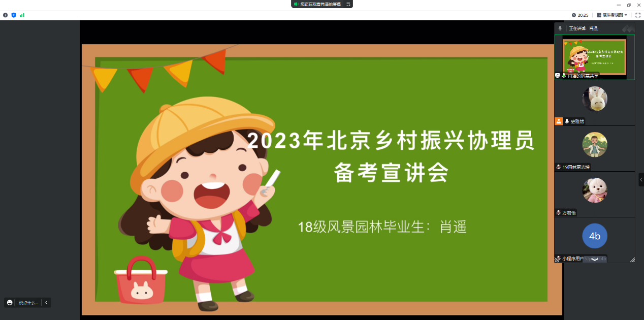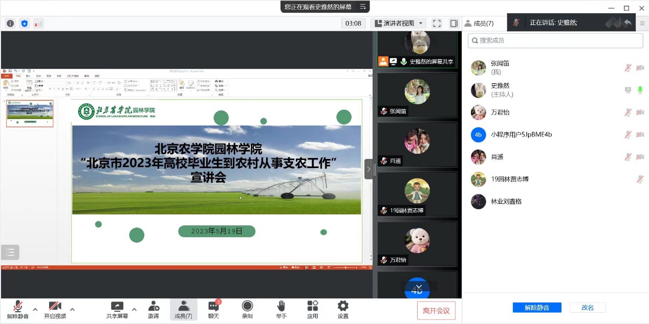 于5月19日在线上举办主题宣讲会。会议邀请学院已从事支农工作的张闻笛、肖遥两位历届毕业生为2023届毕业生进行宣讲。