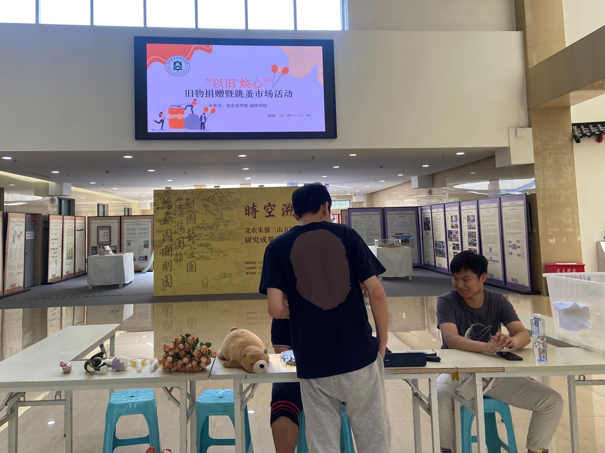 在园林楼一层大厅举办了“以旧'焕心'”旧物捐赠暨跳蚤市场活动,让在校生承载着学长学姐们的期望与祝福,将美好的青春记忆延续。